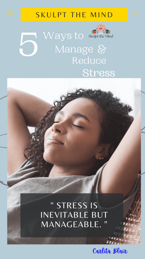 There are many times on this journey of life that we will feel stressed and overwhelmed and that’s just a part of the human experience. But while it’s a part of our journey we were not designed to be in prolonged periods of stress. Five ways to reduce and manage stress are journaling, releasing your inner child, getting out in nature, taking a bath, and communing with God. I hope you find this as helpful as I do as it not only helps me with my day to day unwind, but the many challenges life throws my way. I wish you nothing but peace, love, and light. Until next time, this is Carlita Blair helping you skulpt your mind, one day at a time, with the help of the divine. Peace.